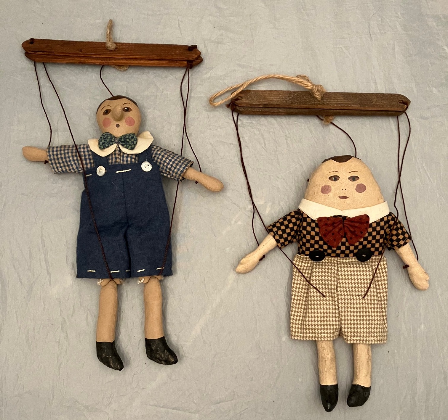 eyes, and a hand-embroidered dark green Perle cotton nose. He is